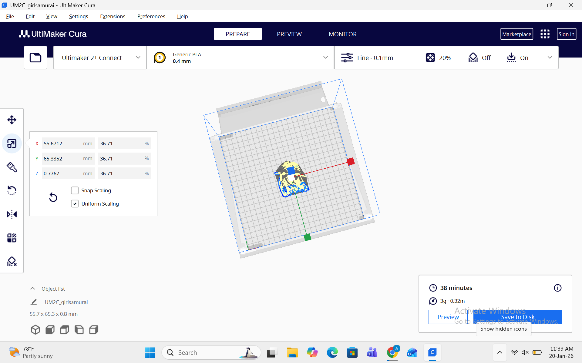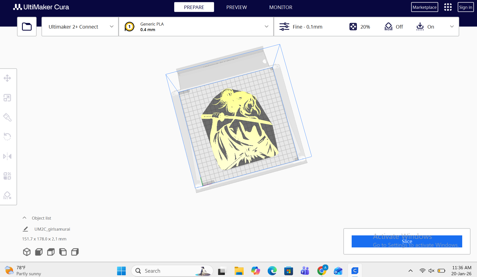 - Import the model into Ultimaker Cura